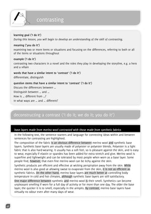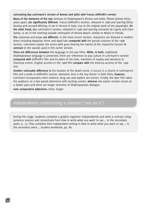 The teacher's guide also contains the answers to the activities that students complete in their workbooks and completed graphic organisers for the examples of the writing skills in How to write what you want to say … in the secondary years.