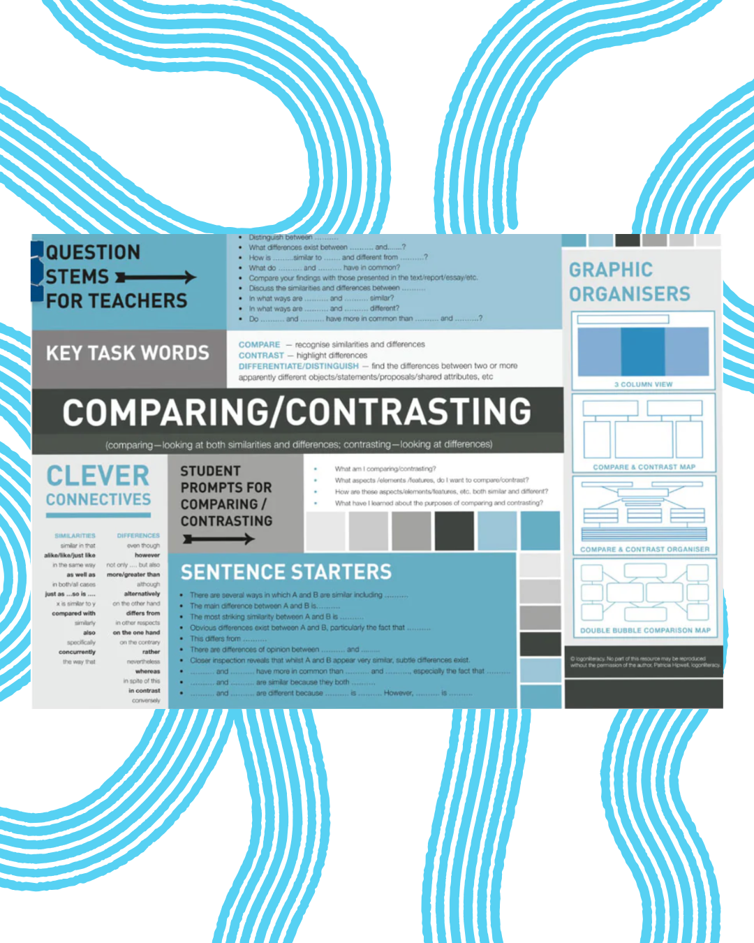 Suitable for Years 7 - 12, the graphic organisers complement Pat's Posters and help teachers explicitly teach the cognitive verbs used in the new Queensland senior syllabus.